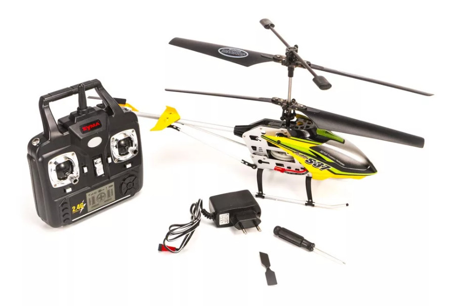 Для этого вертолет требуется подсоединить с помощью специального провода к пульту ДУ. В пульте имеется аккумулятор или батарейки. От них можно выполнять подзарядку. Провод может быть скрыт в корпусе пульта.